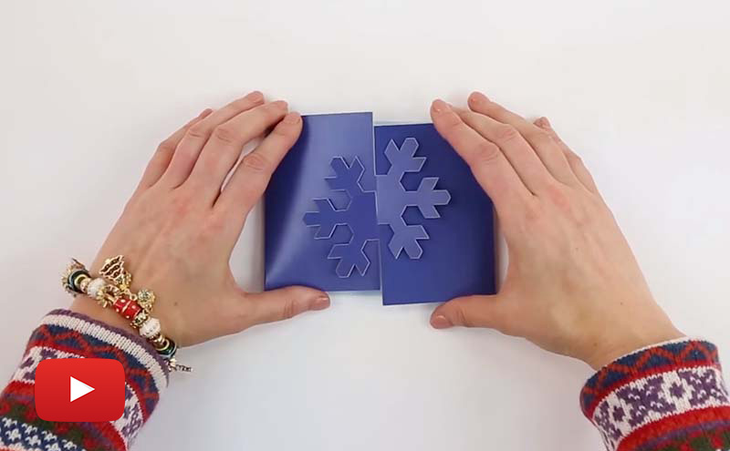 The snowflake locked gate, takes the classic gate fold format and embellishes it with a holiday-themed locking mechanism in the shape of a snowflake. The snowflake is dimensional, and the locking cover makes the format really fun to open. If snow isn’t the theme you’re looking for, consider a locking star, locking tree, or a locking circle.